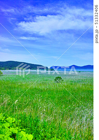 北海道釧路市、初夏の塘路湖と釧路湿原