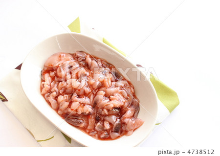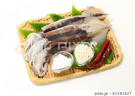 いか塩辛の材料、添加物無しの家庭の手作り、ザル盛り、白バック