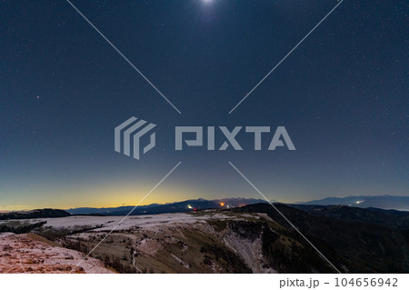 長野県 美ヶ原高原 ビーナスライン 風景 太陽 高所 観光 アルプス 旅行 登山 富士山 雪原 冬