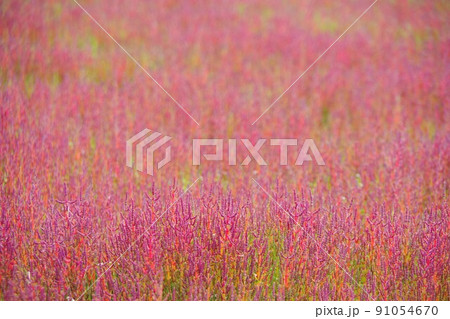 北海道紋別市 コムケ湖 珊瑚草の群生地
