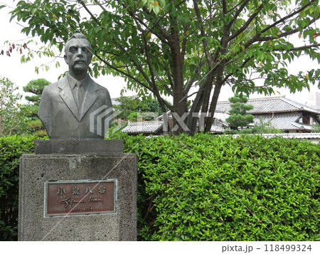 松江市の小泉八雲旧居を背に立つ小泉八雲像