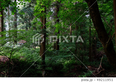 長野県上田市前山に残る塩野神社の周囲を囲む杉檜の山林