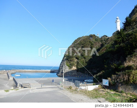 太平洋をのぞむ旧薄磯漁港と塩屋埼灯台