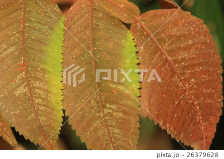 自然 植物 ヌルデ、紅葉が始まった葉。普段日光に当たっているところが先に色づくようです