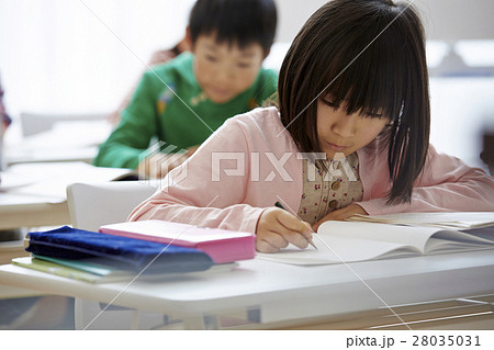 塾で勉強する小学生の女の子