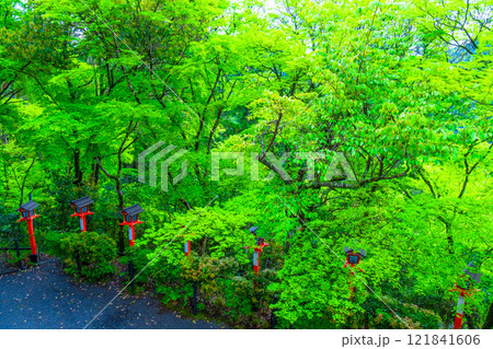 鞍馬寺の献灯篭と新緑