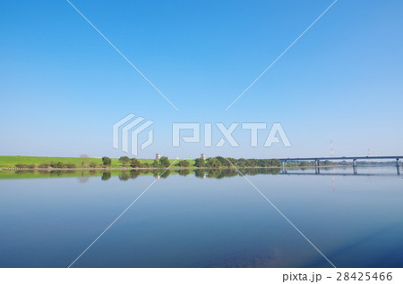利根川と境大橋(茨城県猿島郡境町と千葉県野田市関宿台町の間)