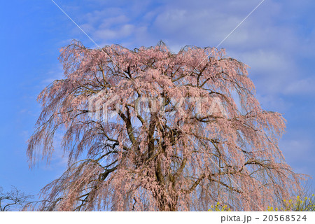 しだれ桜 大木の木と桜花「観光名所:墓守桜」大分県竹田市宮城地区