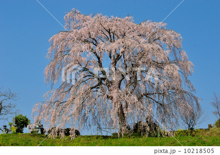 しだれ桜 桜の花と大木「観光名所:墓守桜」大分県竹田市宮城地区