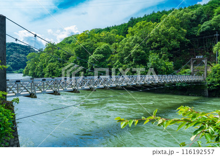 京都府宇治市 初夏 木造の天ケ瀬吊橋