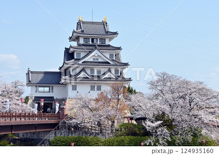 墨俣城の天守閣と満開の桜の風景(墨俣一夜城・岐阜県大垣市)