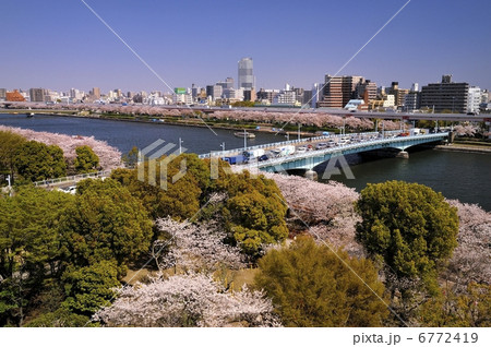 東京都 春の隅田川沿いの大通り 墨堤通り