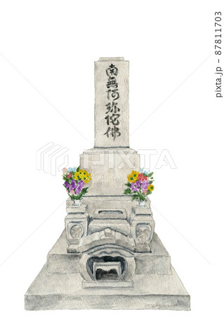 お墓 墓石【手描き水彩画】白バック 透過背景 コピースペースあり