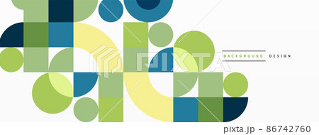 Abstract vector geometric pattern design in Bauhaus style. Popular abstract background vector red blue yellow colors. Art shapes circles and squares. Graphic design backdrop.