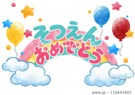 卒園おめでとうの文字とかわいい虹の飾り 手描きイラスト素材