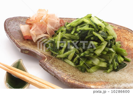 和皿に盛り付けた壬生菜のおひたし 俯瞰
