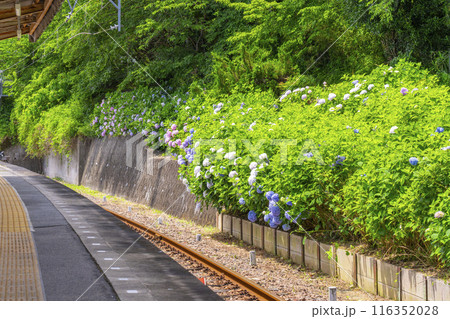 近鉄 壺阪山駅ホーム 紫陽花