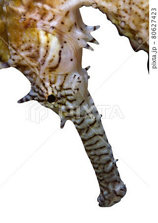 タツノオトシゴのアップ イバラタツ 龍 干支 オレンジバック