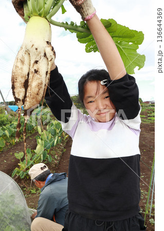 変わった形の大根の収穫