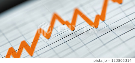 Close-up of a graph with rising orange line illustrating financial growth and success.