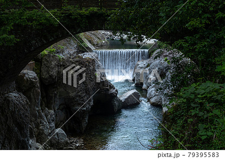 大分県 中津市 山国町 猿飛千壺峡の念仏橋と清流