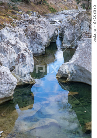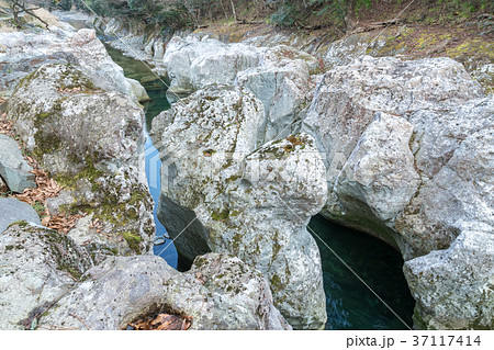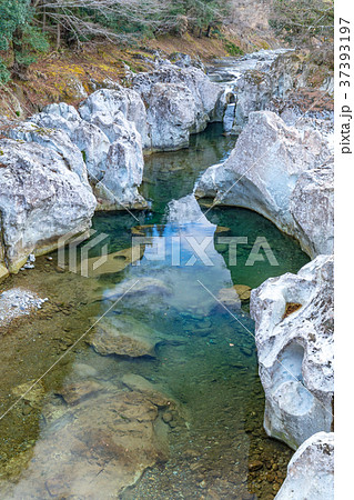 大分県 中津市 山国町 猿飛千壺峡の白い奇岩と清流