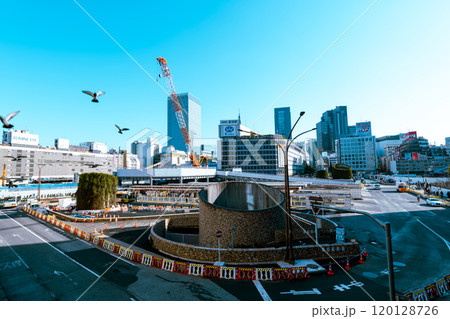 変貌する東京 宮益坂下交差点付近から見る工事中の渋谷駅 2022.10 b-4 ライトトーン
