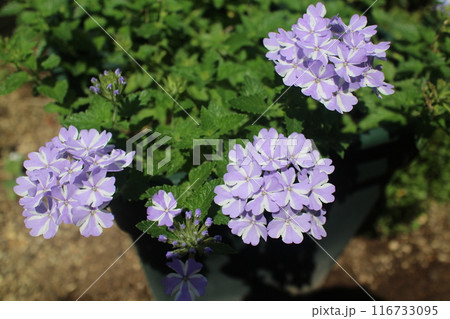 鉢植えのバーベナの花