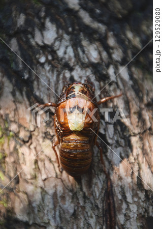 The emergence of a cicada / セミの羽化の始まり,セミの幼虫 - 真上から