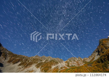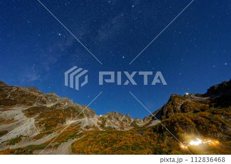 月明かりの紅葉の北アルプス・涸沢と星空
