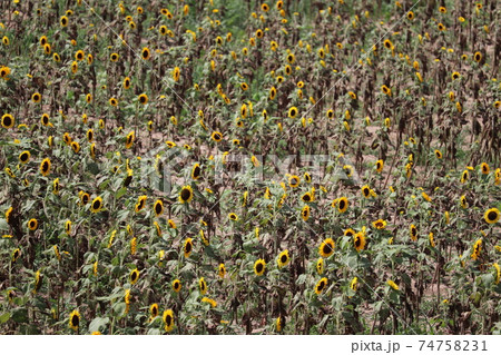 枯れたひまわり、ひまわり、終わり、枯れた、夏、夏の終わり、寂しい、古い、野外、空、公園、寂しい、終焉
