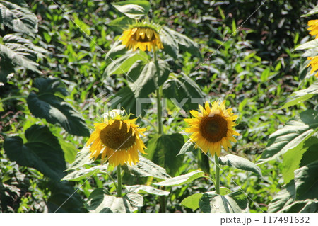 ひまわり、ヒマワリ、向日葵、畑、花、夏、黄色、ひまわり畑、空、野外、夕方、日暮れ、光、所沢、埼玉、日