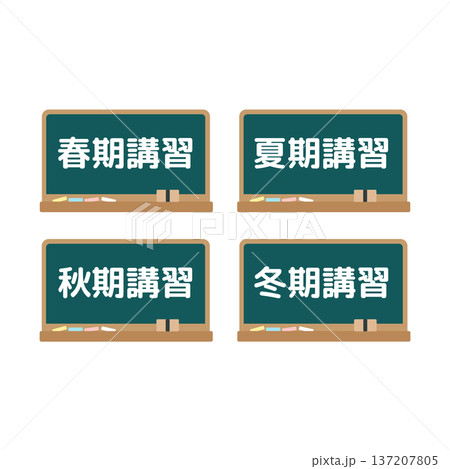 春季講習・夏期講習・秋季講習・冬季講習の黒板 イラストセット