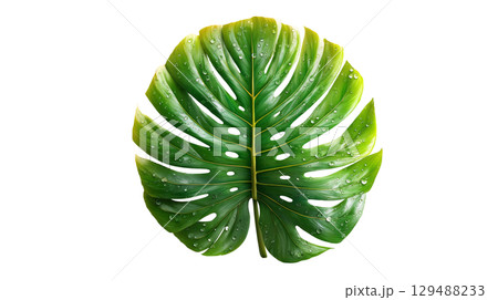 Lush green monstera leaf with water droplets on white background. isolated on transparent background cutout