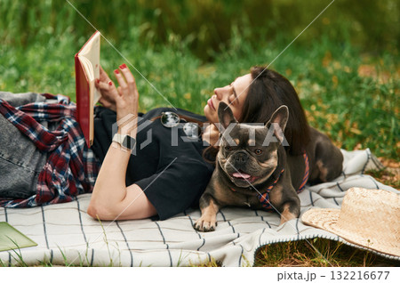 Peaceful mood and place. Beautiful woman is sitting on the ground in the agricultural field