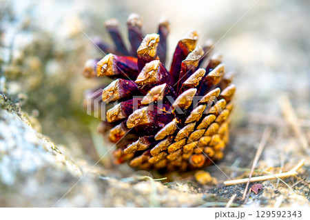 Pinecones fallen from the tree and lying on the ground in a forest