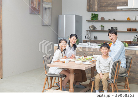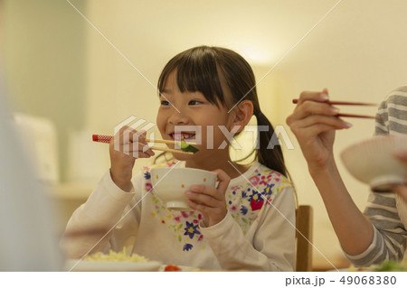 食事をする家族 父親 お父さん お母さん 母親 姉弟 生活感