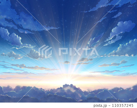 空 太陽 日の出 雲 ドラマチックスカイ イラスト 背景 BG