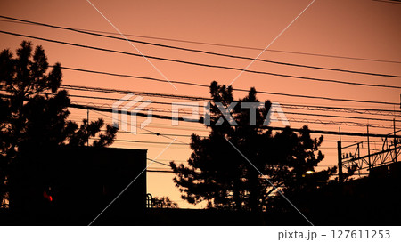 夕焼け シルエット 木々
