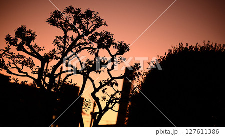 夕陽が差し込む木のシルエット
