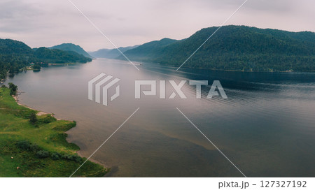 Majestic Winter Landscape Serene River Valley Foggy Mountains Scenic View Breathtaking Nature