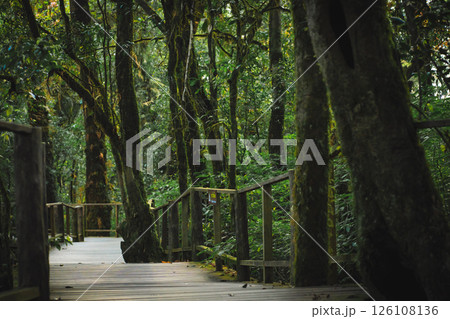 Landscape of Morning Mist with Mountain Layer. mountain ridge and clouds in rural jungle bush forest