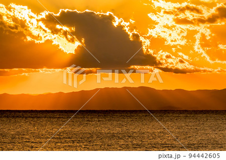 夕陽に染まった海の画像素材(写真・イラスト) 1ページ目