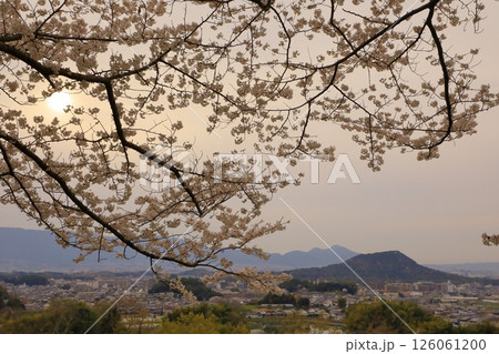 甘樫丘(あまかしのおか)から見た満開の桜と明日香夕景