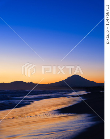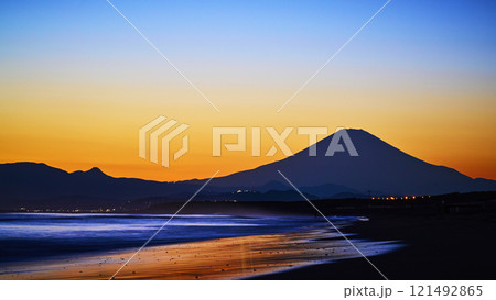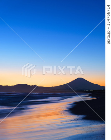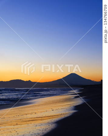 湘南辻堂海岸から眺める富士山の夕景 藤沢市