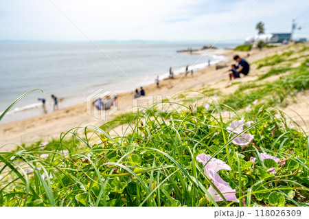北海道乙部町でユウガオの花の朝の風景を撮影