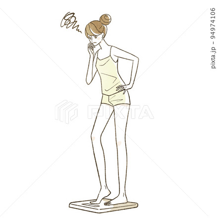 体重計に乗って悩んでいる女性
