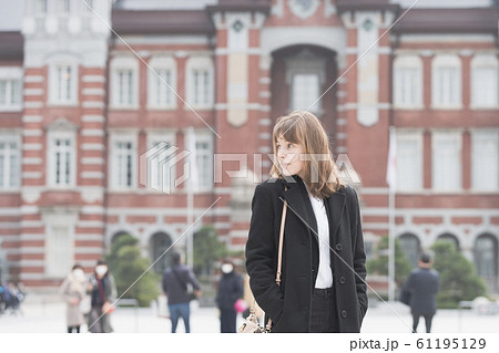 日本・東京(東京駅)を観光する女性