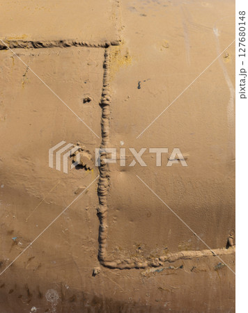 Welded metal surface in industrial outdoor setting