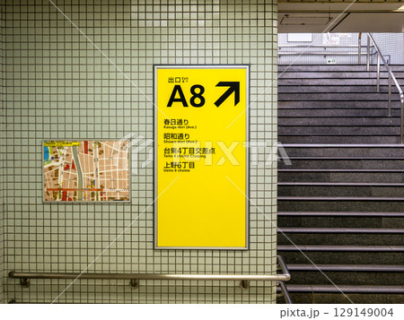 地下鉄駅の連絡通路に掲示された出口案内